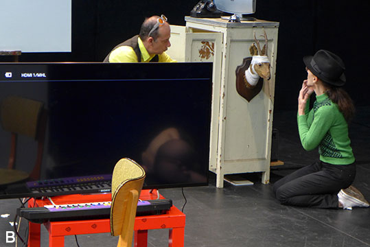 B- Iks raconte « Le chat de Barcelone » à un objet pansé ©Association Arsène