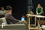 « Je n'y suis pour personne » : ça serait l'idéal, faire une pièce de théâtre, et à la fin, savoir que la pièce sera réussie si je peux dire je n'y suis pour personne. Le travail de théâtre consisterait à s'expulser de la pièce ; alors que les gens essaient de s'y retrouver, de s'y mettre, et on en a jusque-là des ego comme ça qui sont sur scène. Arriver à vider le théâtre de soi-même, là on aurait quelque chose de neuf, sur scène, mais c'est beaucoup de travail quoi, c'est ce qu'on essaie de faire là... arriver à (...)