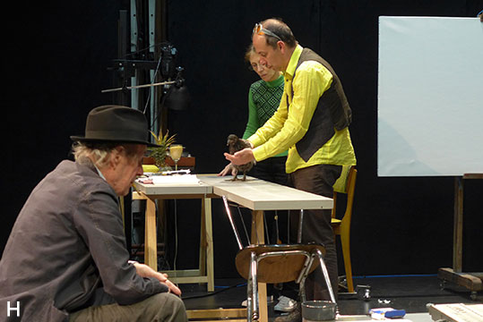 F- André S. Labarthe, Iks, Guy Merlant et la poule ©Association Arsène