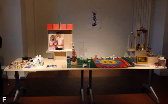 - Des œuvres en réduction, des notices, des modes d'emploi et des documents collectés témoignant de la présence de l'Art Tangent dans l'espace en général et dans l'espace local en particulier.