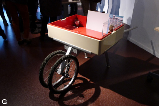 Destiné à passer partout, ce 4x4 de l'Art Tangent est constitué une valise à roulettes botulienne comprenant un récipient principal laqué ivoire et carmin. Le couvercle ôté, on découvre un volume absolument plein : l'Art Tangent craint le vide.
