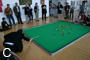 A/E- Partie de billard Tangent au Frac Alsace entre Odile Darbelley et Michel Jacquelin, co-commissaires de l’exposition L’Art Tangent.