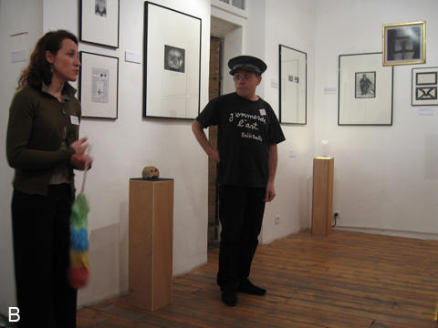> Une visite de l’exposition des Bas morceaux de l’Odalisque par deux guides assermentés de la Fondation Professeur Swedenborg permet au public de mieux saisir les traits d’humour entre les différentes pièces de l’œuvre polymorphe de Duchamp Duchamp.