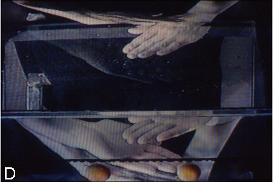 L’utilisation de la vidéo semble "transparente", son rôle serait d'enrichir d'un nouveau point de vue la perception du spectateur. Pour le public, la performance tient alors dans la complexité du texte et dans la manipulation délicate des jaunes d'œufs dans l'eau du « vivarium », mais l'installation est à double détente et fonctionne comme un leurre. L'image vue est-elle celle de la réalité vécue ?