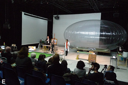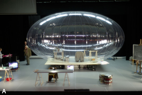 Il s'agit d'une bulle gonflée d'environ 8 mètres de long dans le plan horizontal et de forme elliptique, en plastique transparent. Cette bulle est posée sur un socle opaque haut de 50 cm qui permet les entrées et les sorties du dispositif ainsi que les installations techniques nécessaires à son fonctionnement (son, lumière, image, informatique, air…). Ce dispositif est autonome et peut être posé sur un plateau de théâtre, dans une salle d'exposition et dans tout autre lieu intérieur.