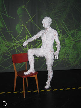 > Après avoir exploré, au fil des épisodes, les rapports à l'objet et à l'espace, puis les modes plastiques de représentation classique, A. Pophtegme, (Jules), développe pour l'épisode de Créteil une création interrogeant la notion d'image mécanique. Photographie, cinéma, vidéo et aujourd'hui images numériques, sont des supports modernes. Ils produisent de plus en plus rapidement des images qui sont de plus en plus suspectes. Que reste-t-il du théâtre dans une image? Comment peut-on faire confiance aux représentations? Que reste-t-il de l'œuvre d'art reproduite, privée de son "aura" de pièce unique?