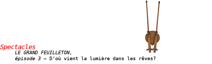 A. Pophtegme se pose toutes ces questions alors qu'il est lui-même troublé par la cohabitation avec Fernand qui répète son opéra contemporain burlesque Marthe O'Martow en forme de soap opéra vidéo. La fabrication de l'image, la boîte noire du théâtre prise comme chambre photographique, la cristallisation de la lumière sur une surface sensible, la fixation de l'image révélée comme on garde un souvenir, autant d'étapes et de procédés mis en jeu et en espace dans cet épisode.