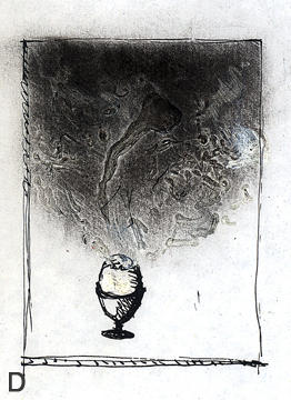 D- « L’odeur d’irone », croquis de travail de Duchamp Duchamp pour l’œil qui fume (abandonné dans la version définitive de Vvert Célacon)