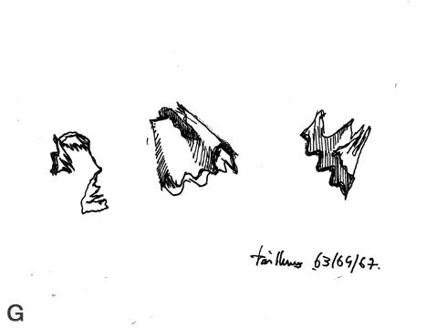 G- « Taillures de crayon N°63/64/67 », croquis de travail de Duchamp Duchamp